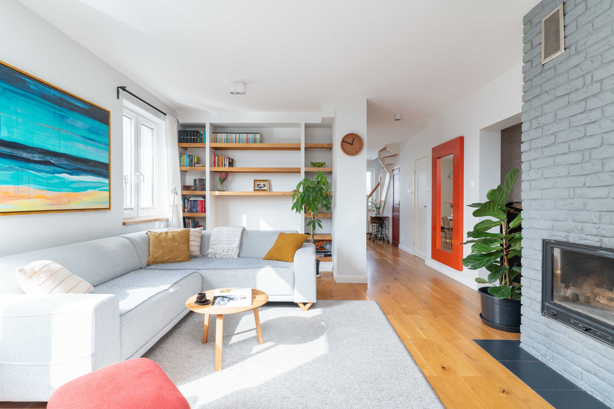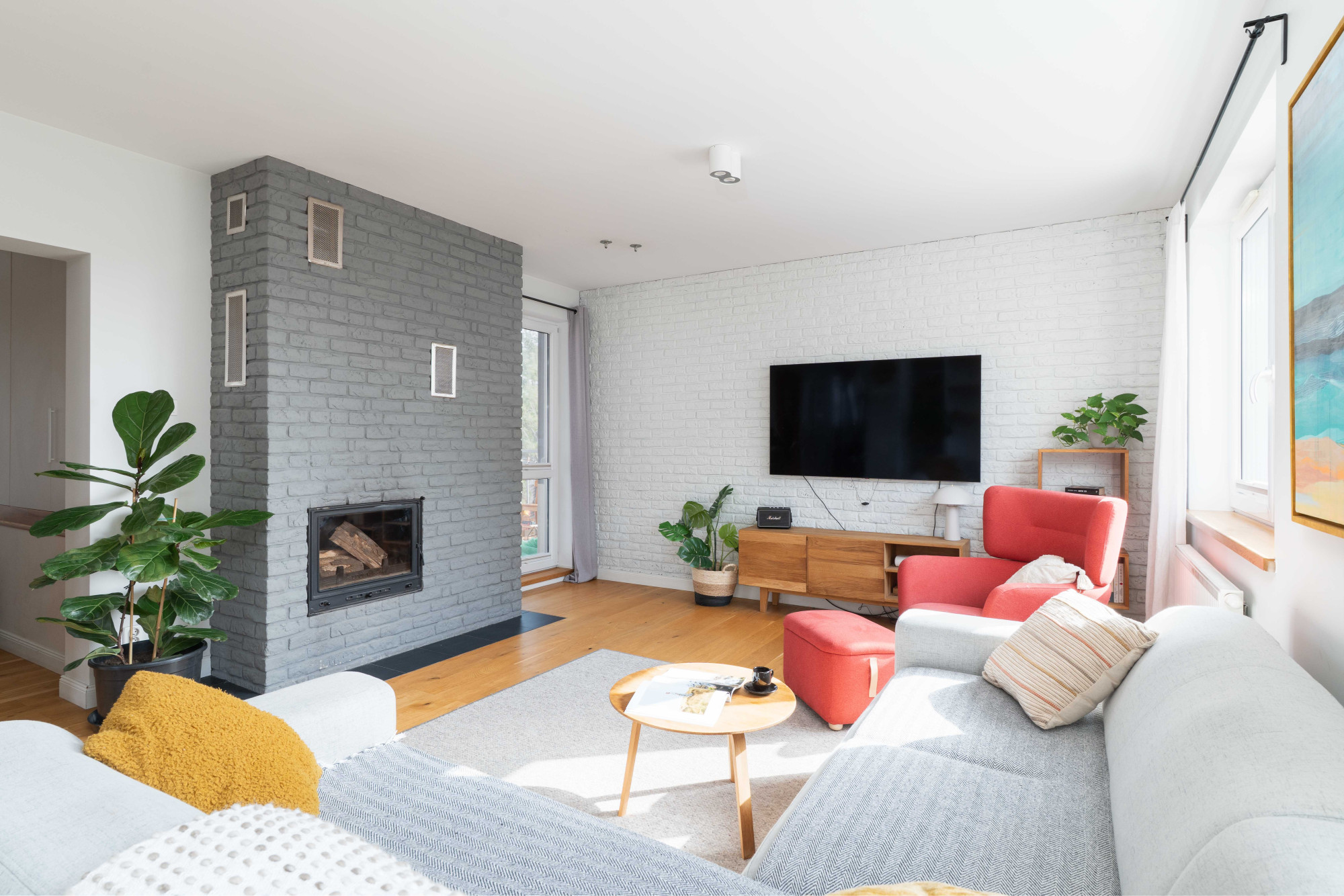 – przestronny salon z kominkiem, stanowiący serce mieszkania i idealną przestrzeń do wspólnego spędzania czasu,