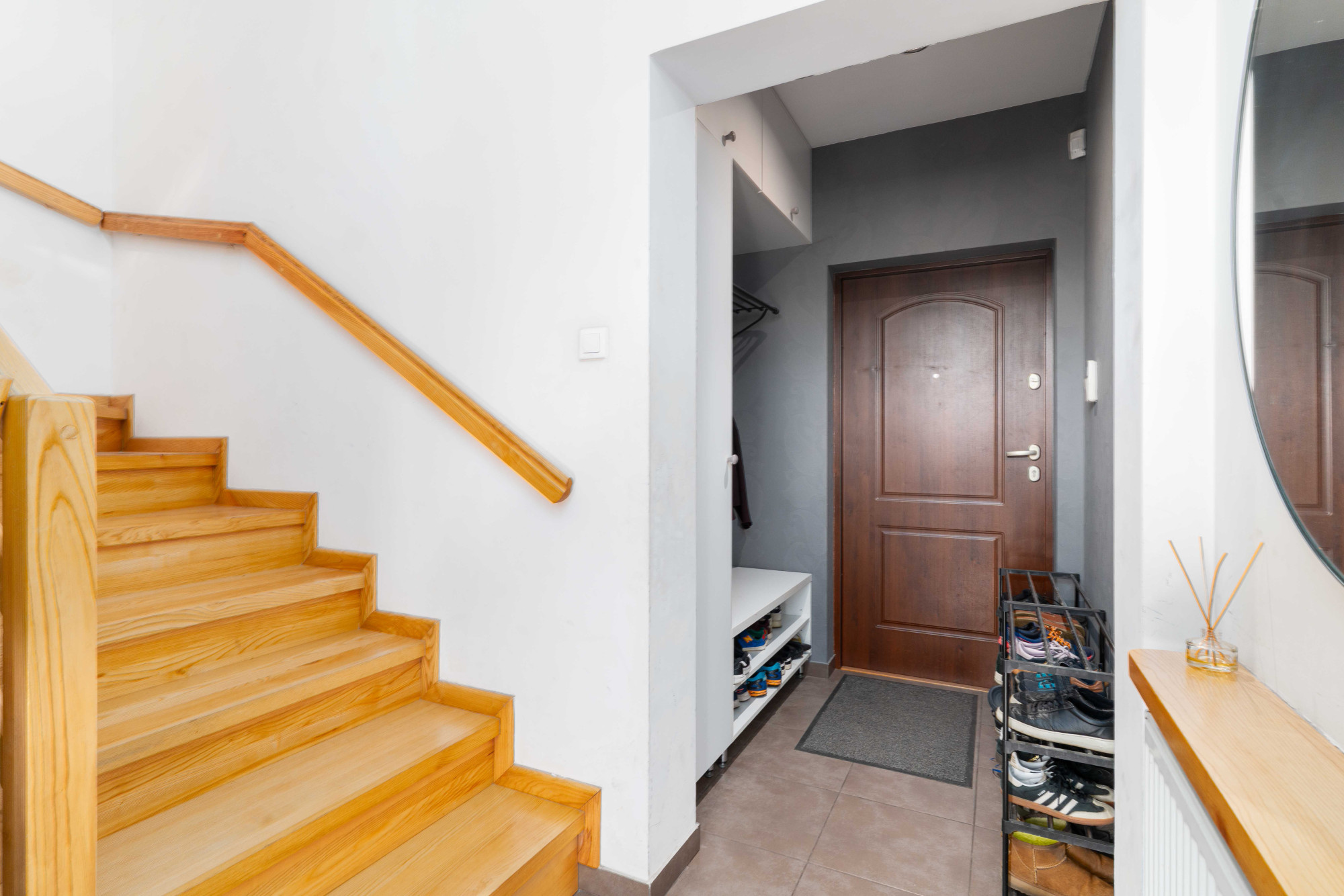 Przemyślany układ pomieszczeń, ustawne pokoje oraz wyraźny podział na strefę dzienną i prywatną sprawiają, że nieruchomość doskonale sprawdzi się zarówno dla rodzin z dziećmi, jak i dla osób pracujących zdalnie, które potrzebują dodatkowej przestrzeni do pracy.