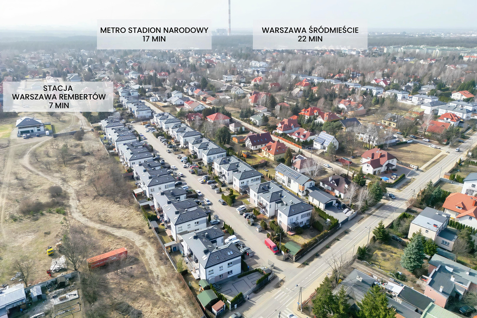 Dodatkowym atutem jest bardzo dobra komunikacja z centrum Warszawy. W pobliżu znajdują się przystanki autobusowe, a szybki dojazd do centrum zapewnia również Szybka Kolej Miejska, dzięki której podróż do śródmieścia zajmuje około 15 minut.