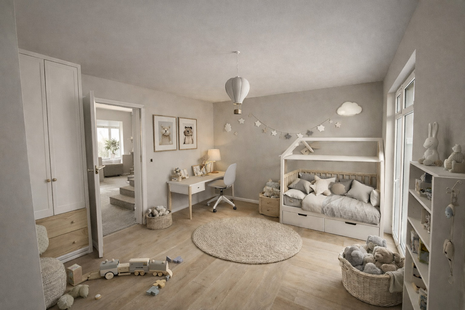 I piętro: dwie ustawne, dobrze doświetlone sypialnie, praktyczna garderoba oraz dwie funkcjonalne łazienki, które zapewniają wygodę i swobodę codziennego użytkowania domownikom.