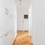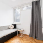 Mieszkanie znajduje się w niskim, kameralnym budynku, w cichej i zielonej części dzielnicy. Widok na zieleń zapewnia prywatność i spokój, a