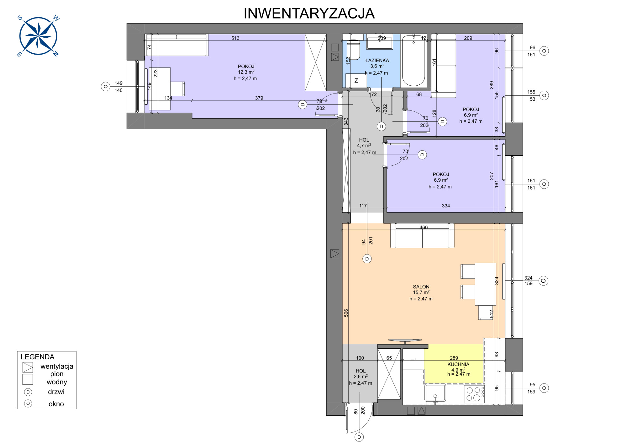 - 4 pokoje – salon z aneksem + 3 sypialnie