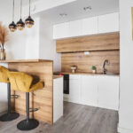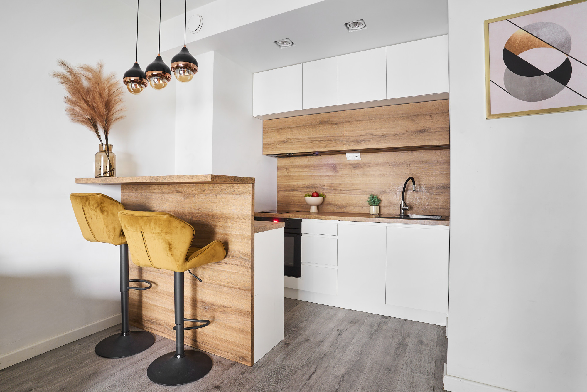 Wnętrze zostało zaprojektowane z myślą o wygodzie użytkowania, w oparciu o wysokiej klasy materiały. Przestrzeń dzienna jest jasna, funkcjonalna i optymalnie zaaranżowana, a aneks kuchenny oferuje liczne rozwiązania sprzyjające przechowywaniu i codziennemu komfortowi. Nowoczesna łazienka utrzymana jest w eleganckich, spójnych z całością mieszkania tonacjach.